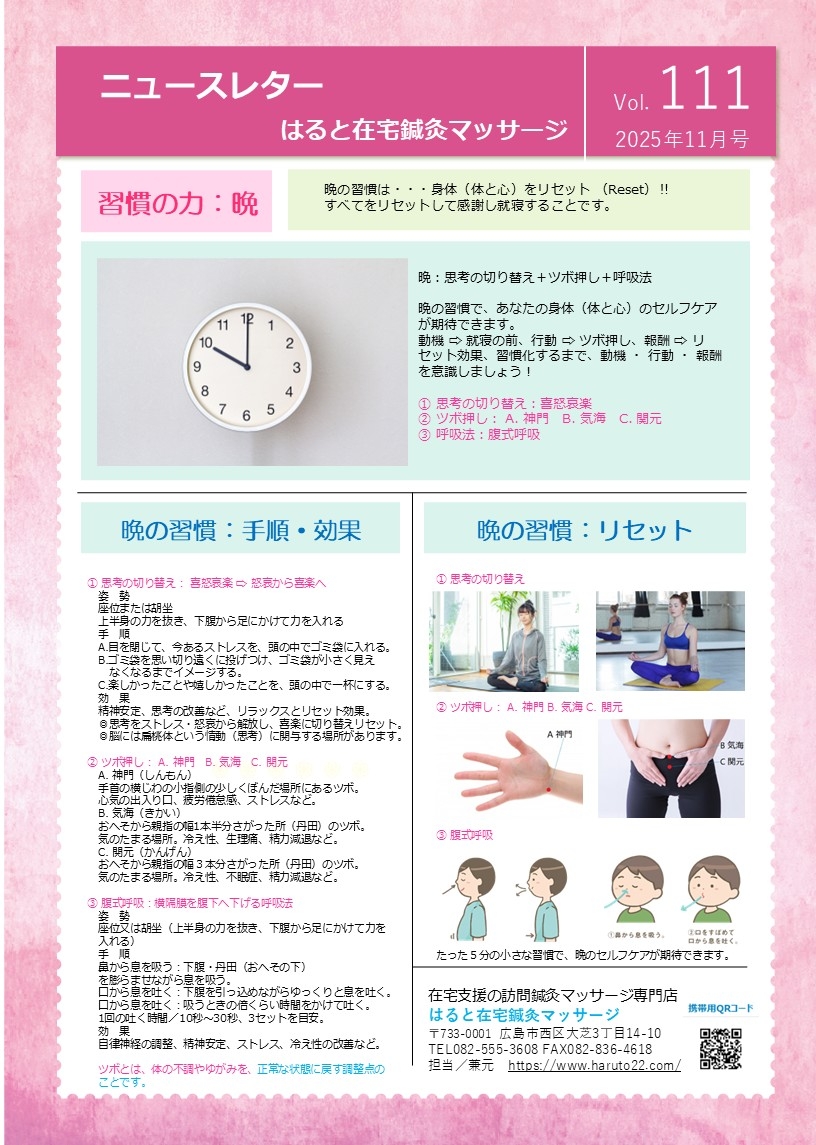 内容:肩こり、腰痛、疲労など、困った時のツボ情報。